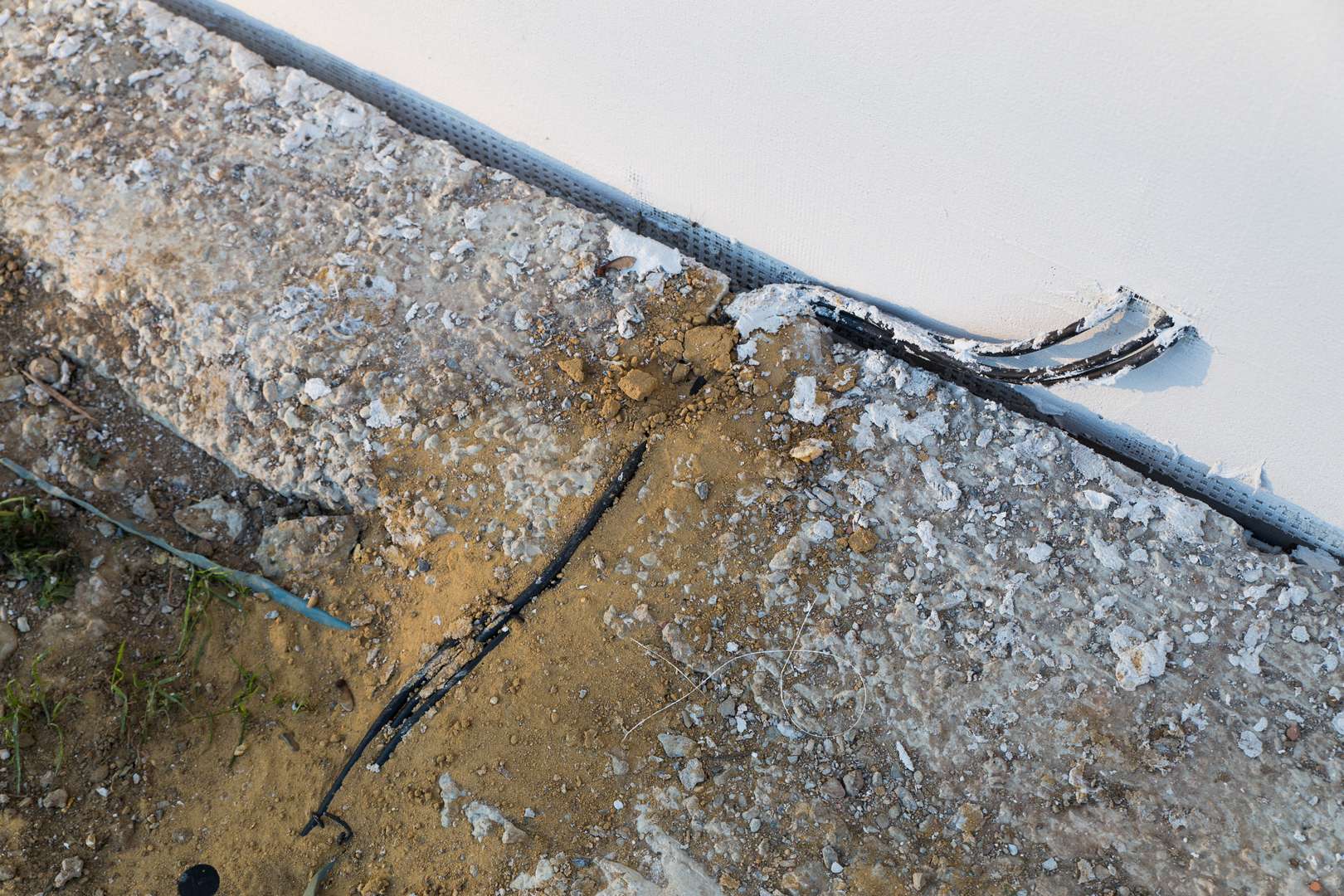 Nebenbei haben wir noch die Satellitendosen angeschlossen und in die Garagenfundamente Schlitze für die Erdkabel geschnitten.
