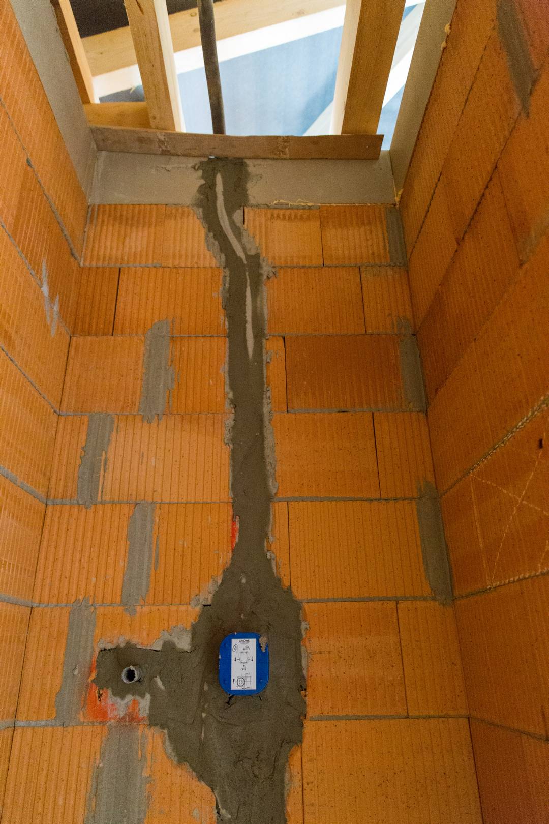 Die Klempner waren mit den Innenputzvorbereitungen beschäftigt und brauchten zum Verspachteln ihrer Leitungen Wasser. Abends sind wir dann noch einmal hingefahren, um das Standrohr wieder abzuholen und haben ein paar Fotos von den heutigen Ergebnissen gemacht 😄.
